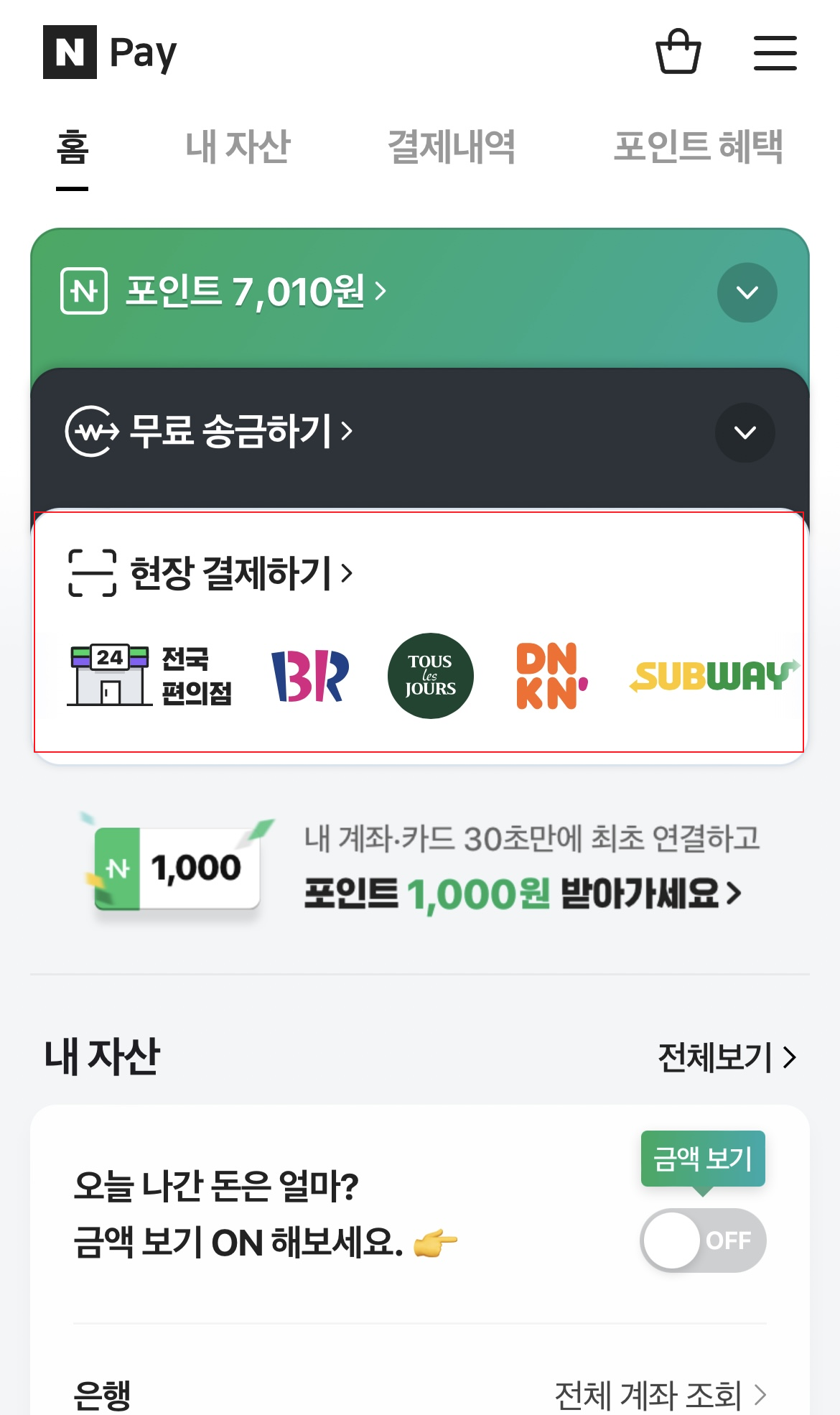 또한 '증권계좌 연결하기'와 '카드 연결하기'도 나오니 필요하신 분들은 이 또한 연결하셔서 사용하시면 되겠습니다.