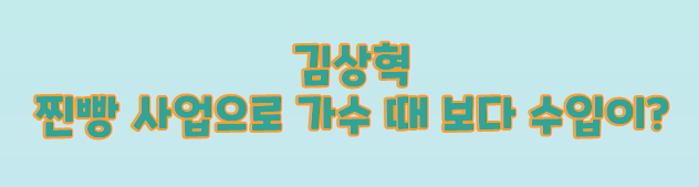 음주운전 논란, 이혼 등 여러가지 개인사로 이슈가 많이 되었던 그룹 클릭비 출신의 김상혁도 본인의 사업을 시작했는데요. 최근 시작한 찐빵 사업으로 월 매출 3000만 원을 기록했다고 합니다. 사실 클릭비 시절에도 인기가 많아 각종 예능 프로그램에도 출연하는 등 많은 돈을 벌었지만 번 돈을 어머니가 사업에 잘 못 투자하셔서 힘든 시기를 보냈다고 알려져 있습니다.