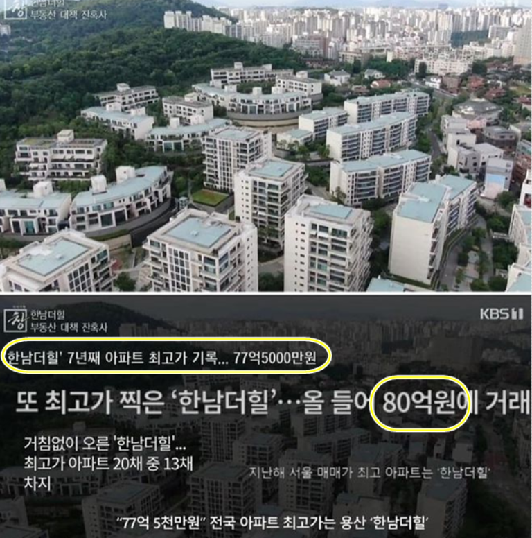 진짜 찐 부자들이 모여사는 곳이라고 불리는 한남동의 '한남더힐'은 지난해 서울에서 거래된 최고가 아파트였습니다. 이로써 2014년부터 한남더힐은 7년 연속 최고가 아파트로 자리를 잡게 되었습니다. 한남더힐이 거래되기 전만 해도 서울의 아파트 최고가는 40-50억 정도였는데, 한남더힐이 거래되기 시작한 2014년부터 최고가가 70-80억으로 높아졌습니다.