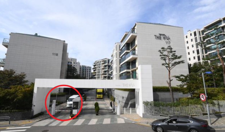 한남더힐은 정문과 후문을 비롯한 산책로로 이러지는 모든 출입구까지 엄격 통제되고 있는 것으로 알려져 있습니다. 아파트 안을 통과하기 위해서는 경비원에게 방문 목적을 꼭 알려서 확인이 되어야 입장이 됩니다. 동과 동 사이는 다른 아파트에 비교하면 꽤 멀리 떨어져 있는 편이고, 총 32개동 600가구로 밀집도가 엄청 낮은 편이라고 할 수 있습니다.