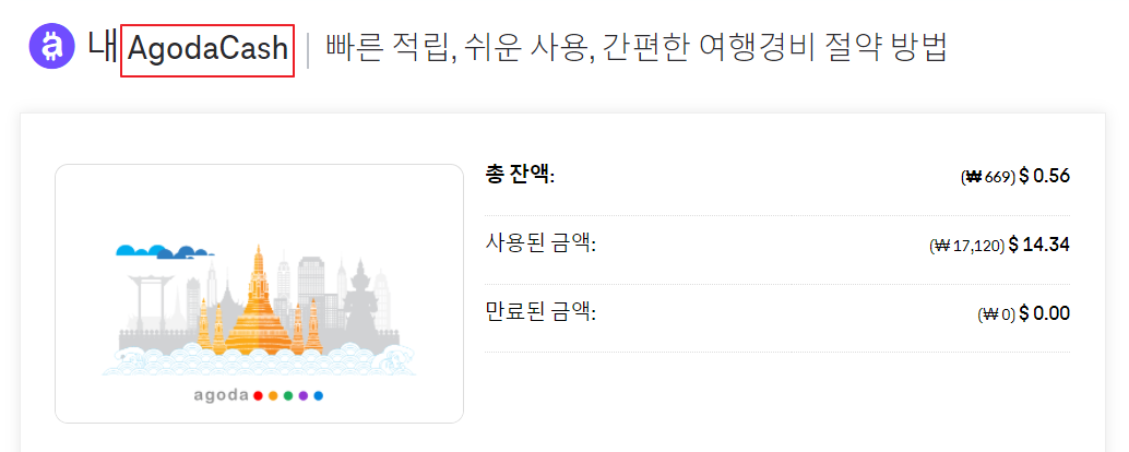 아고다를 이용할 때마다 적립금이 생기는데 바로 아고다 캐시라는 제도입니다.