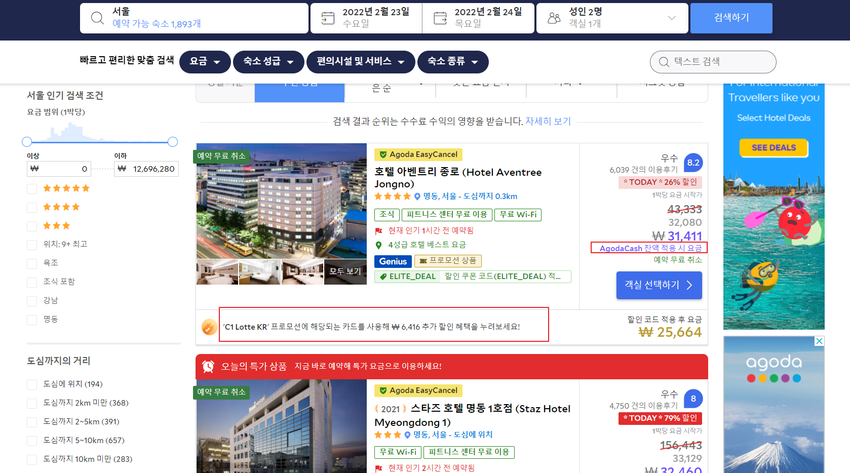 저는 출장이 잦은 편이어서 계속 아고다를 통해서 호텔을 예약했는데요.