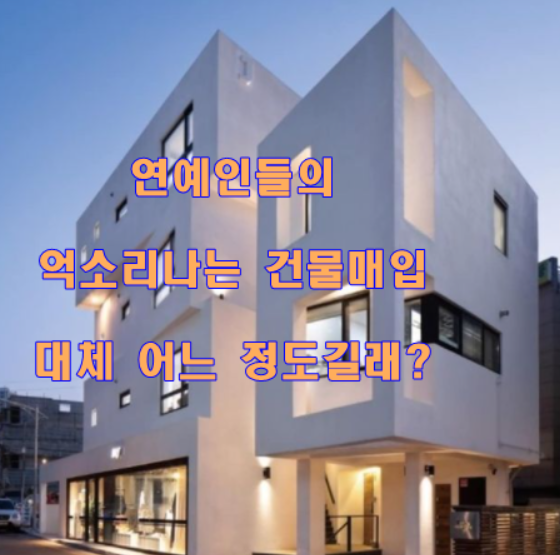 연예인들의 건물을 매입했다는 소식은 늘 이슈가 되고 있는데요. 일반 사람들은 평생 일하도 할 수 있을까 말까 하는 것이 요즘 세상에 내집 마련인데, 연예인들은 내집 마련은 고사하고 어마어마한 가격을 자랑하는 빌딩을 하나도 아니고 많게는 몇 채씩 매입을 하고 있는 것을 보면 왜 너도 나도 연예인이 되려고 하는지 알 수 있을 것 같습니다.