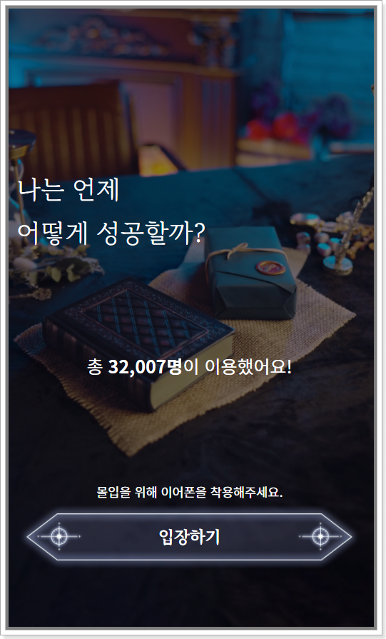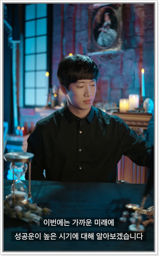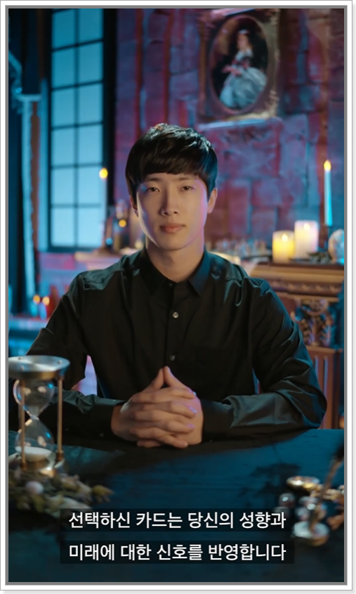 입장을 하면 타로점을 봐주시는 선생님이 등장을 합니다. 정말 타로집에 있는 것 같은 느낌을 가져다주는데요. 우리의 성향과 성공운이 높은 시기에 대해서 알아봐 주십니다.
