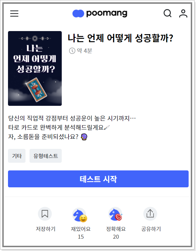 푸망에는 다양한 재밌는 테스트들이 많은데요. 저도 심심할 때마다 들어가서 관심 있는 테스트를 해보는 편입니다. 또한 새로운 테스트들이 업데이트가 되어서 재미를 더해주고 있는데요. 이번에 새로 눈에 띈 테스트가 있어서 소개해드리려고 합니다.