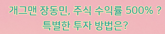 개그맨 장동민은 방송에서 자신의 주식 투자 경험을 공개했었습니다. 물론 이렇게 되기 까지는 많은 실패의 쓴 맛을 경험했었어야 했는데요. 주식 시장에 뛰어들게 된 계기도 '지인의 추천'으로 라고 합니다.