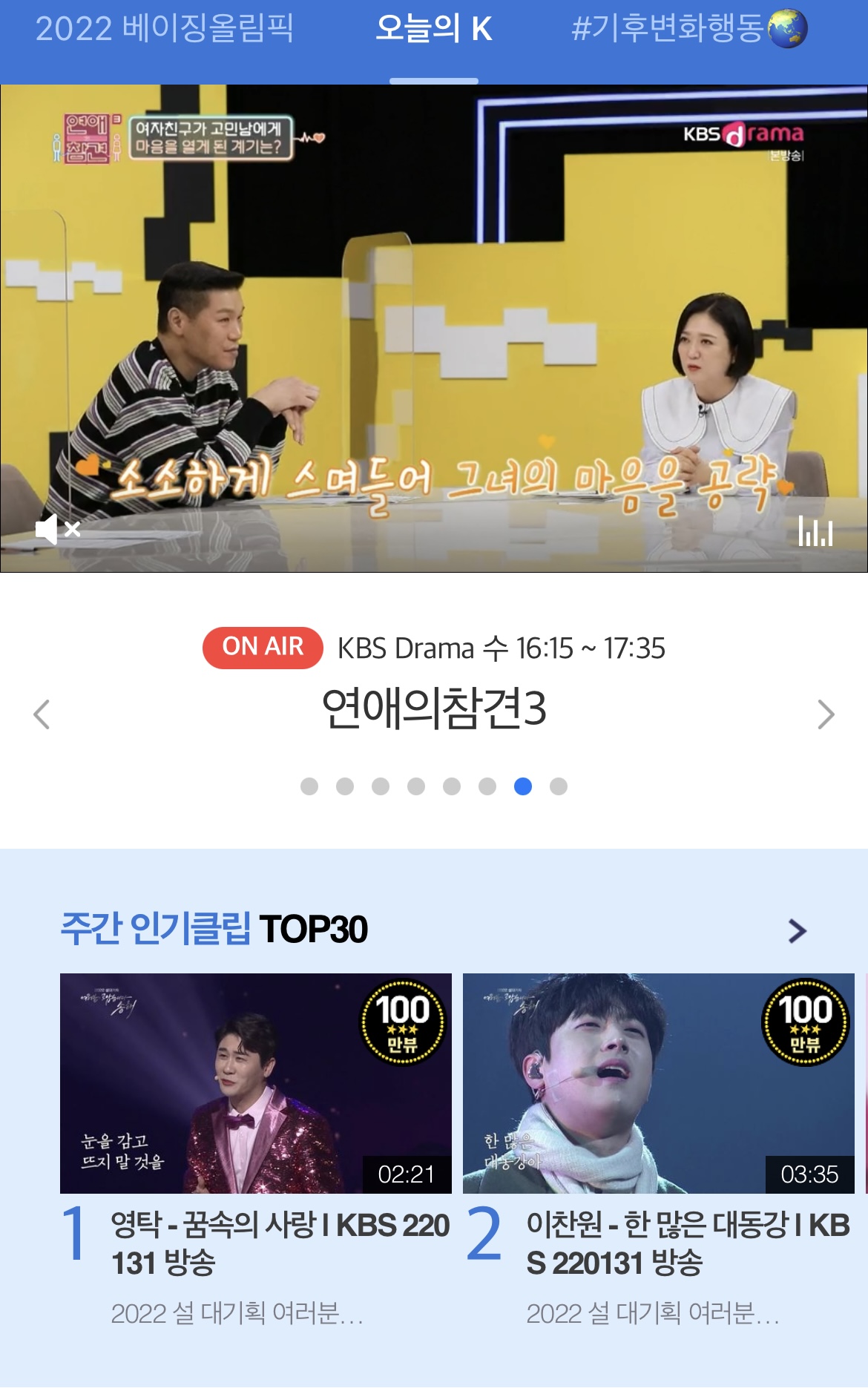 저는 KBS1 온에어 바로가기로 들어가보겠습니다.